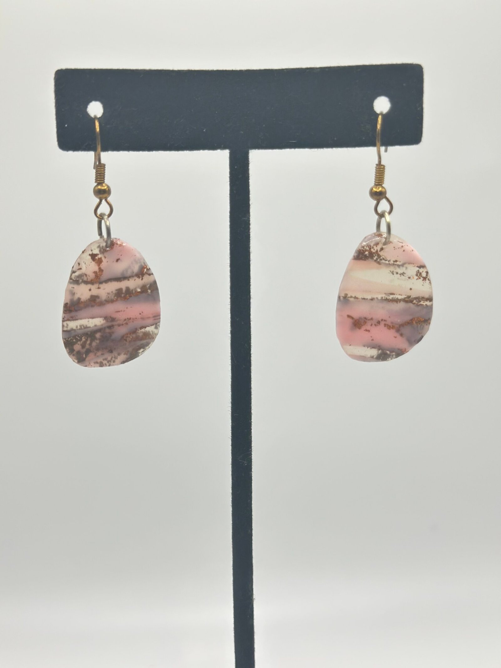 Organic, stone-like shapes made of semi-transparent marbled pink and gold. Flakes of gold foil streak the marble.